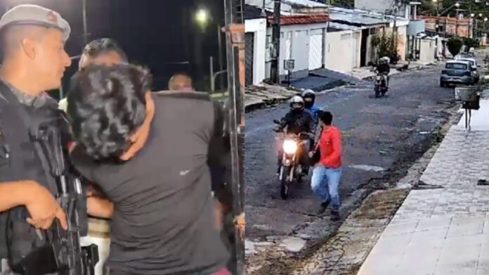 O crime foi registrado por câmeras de segurança e mostra quatro assaltantes, divididos em duas motocicletas perseguindo um trabalhador. Mesmo tentando fugir, a vítima foi abordada e teve seus pertences roubados de maneira brutal.