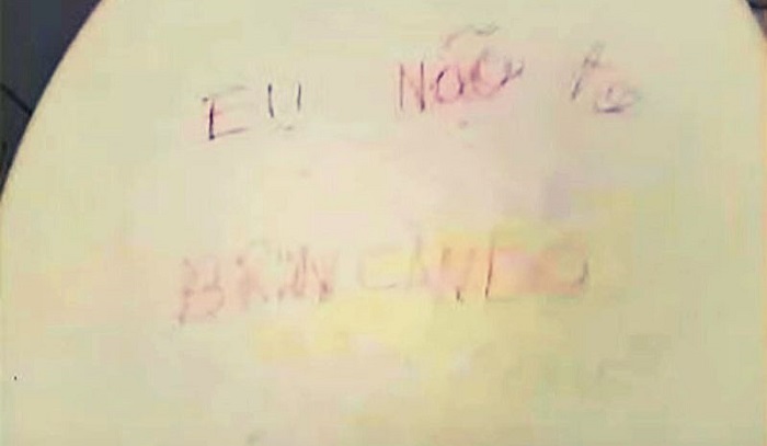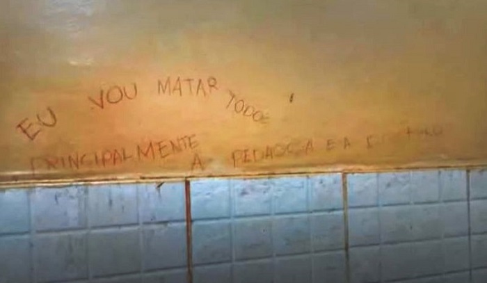 Os adolescentes deixaram mensagens registradas nas paredes do banheiro da escola. Uma das mensagens ameaçava a pedagoga e a diretora.