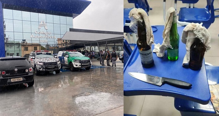 Manaus – Um adolescente de 12 anos que atacou colegas com uma machadinha na tarde desta segunda-feira (10), em uma escola particular na Rua Marciano Armond, bairro Cachoeirinha, zona sul de Manaus, já tinha histórico de agressividade, exaltava massacres e levou outras armas dentro da mochila. O jovem é aluno da unidade de ensino do 7º ano e pretendia atingir pelo menos 12 estudantes. Segundo informações, o estudante já passou por outros ataques de raiva dentro da escola.