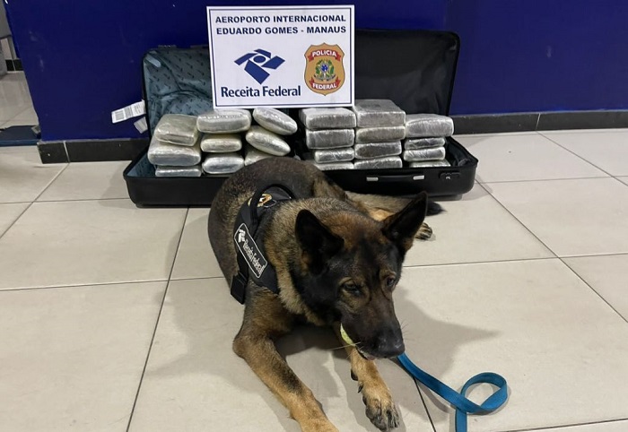 Manaus – Cerca de 37 quilos de maconha do tipo ‘skunk’ foram apreendidas após o cão farejador K-9 identificar duas bagagens contendo as drogas em seu interior, no Aeroporto Internacional Eduardo Gomes, em Manaus. Duas pessoas que não se conheciam foram presas.