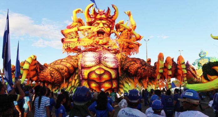 Enquanto isso, no lado encarnado da cidade, o Boi Garantido também avança na reta final dos deslocamentos. Suas alegorias percorrem um trajeto de mais de dois quilômetros pelas ruas de Parintins, com empenho total dos kaçauerés nome dado aos trabalhadores que conduzem as estruturas do boi vermelho e branco.
