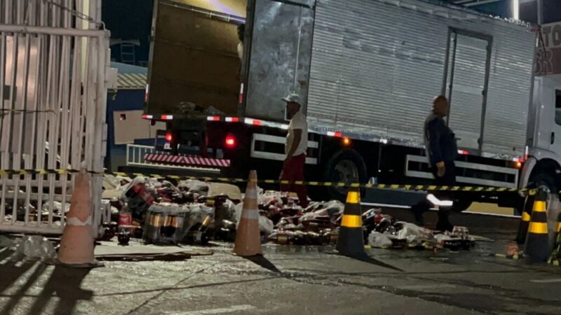Com o impacto, parte da entrada ficou parcialmente bloqueada, o que exigiu atenção redobrada de motoristas e trabalhadores que circulam pelo local.
