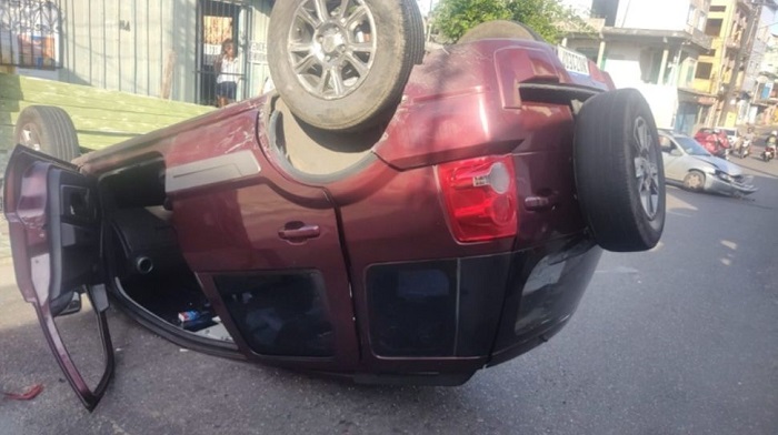 Um carro ficou destruído durante acidente de trânsito na manhã desta sexta-feira (9°), na rua Ovídio Monteiro (antiga rua 11), no bairro Alvorada II, na zona Centro-Oeste de Manaus.