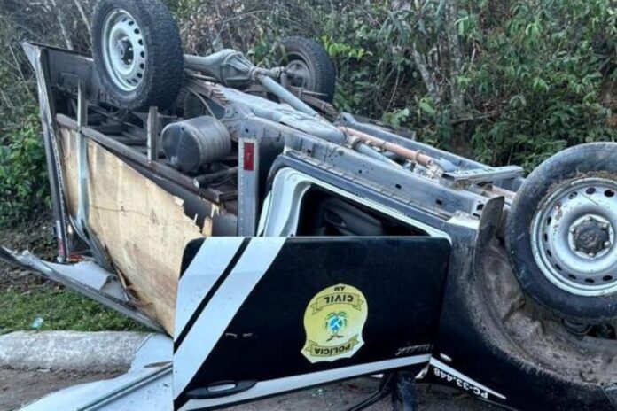 Uma viatura do IML (Instituto Médico Legal) que transportava o corpo de uma mulher de 51 anos capotou na tarde deste domingo (2), na BR-174, nas proximidades da barreira e do ponto conhecido como “Botecão”. A equipe retornava de Presidente Figueiredo (distante 107 km de Manaus), onde havia realizado a remoção do cadáver.