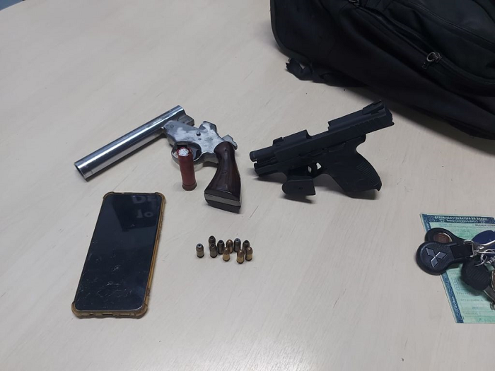 Segundo a polícia, durante patrulhamento na área, a equipe foi abordada por um pessoa informando que havia um suspeito armado dentro de um veículo, modelo Siena, placa JXB-2043. Os policiais localizaram o veículo e encontraram o casal no carro. Eles fizeram sinal sonoro e realizaram abordagem aos suspeitos. Com a dupla foi encontra a duas armas de fogo, sendo uma pistola e uma espingarda, dois celulares e cinco Tvs.