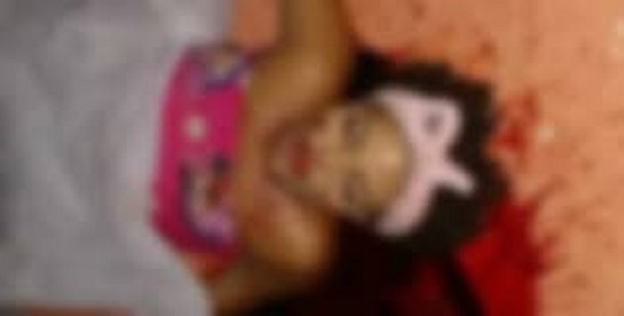 A jovem de pele morena e cabelo encaracolados estava vestindo uma blusa da personagem de desenho infantil Minie e uma faixa rosa prendendo o cabelo com um laço. Sob o corpo havia uma poça de sangue.