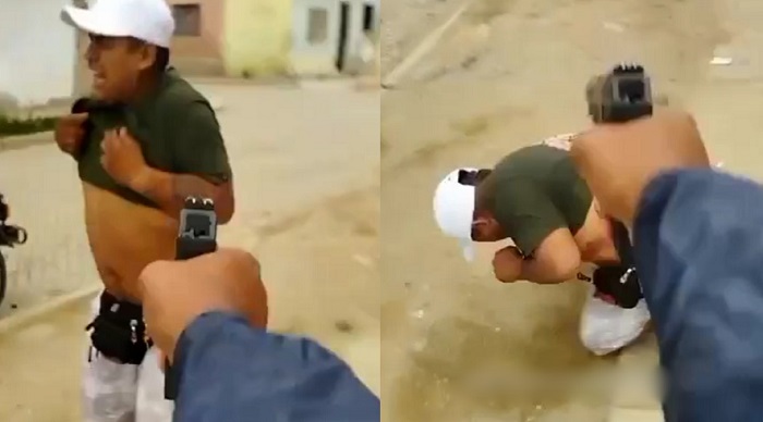 Ele então aponta a arma e faz vários disparos, matando o rival na hora.