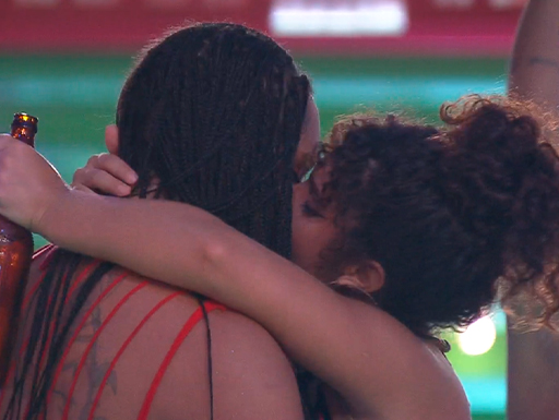 Depois de ter ficado com Eliezer, a sister deu um beijão em Lina, que disse estar com ciúmes da atriz com o brother. Vale lembrar que antes da festa, a sister havia reclamado de dores e, também, chegou a chorar de emoção com músicas durante o show de Ferrugem.