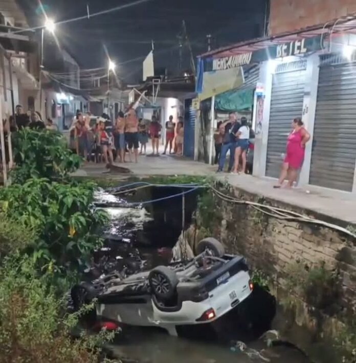 Na noite deste domingo (8), um motorista acabou caindo com seu veículo dentro de um igarapé na rua Francisco Couto Vale, no bairro Petrópolis, zona Sul de Manaus, após uma tentativa de fuga.