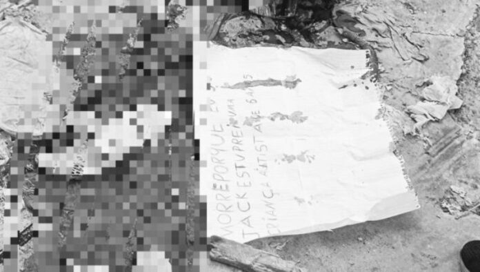 O bilhete deixado junto ao cadáver dizia: “Morri porque sou Jack”, e alegava que a vítima teria abusado sexualmente de uma criança autista de 6 anos — uma possível justificativa apresentada pelos executores para o homicídio. A identidade do homem ainda não foi confirmada.