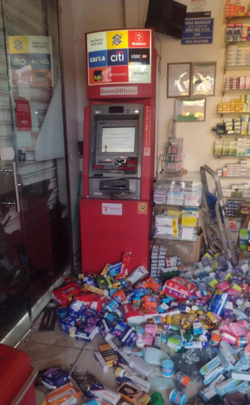 Uma imagem divulgada mostra o local com as mercadorias no chão logo após a explosão. O estabelecimento foi arrombado pelos criminosos. Ninguém foi preso durante a ação.