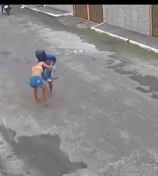 Dois bandidos de motocicleta batem em uma mulher antes de assalto
