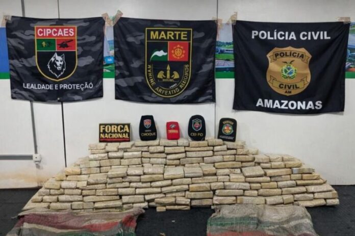 Segundo a corporação, a droga estava escondida em um bote de alumínio, que também foi apreendido durante a ação realizada pela Base Fluvial Arpão 3, no âmbito da operação Protetor das Fronteiras/Fronteira Mais Segura, coordenada pela Secretaria de Segurança Pública do Amazonas (SSP-AM).