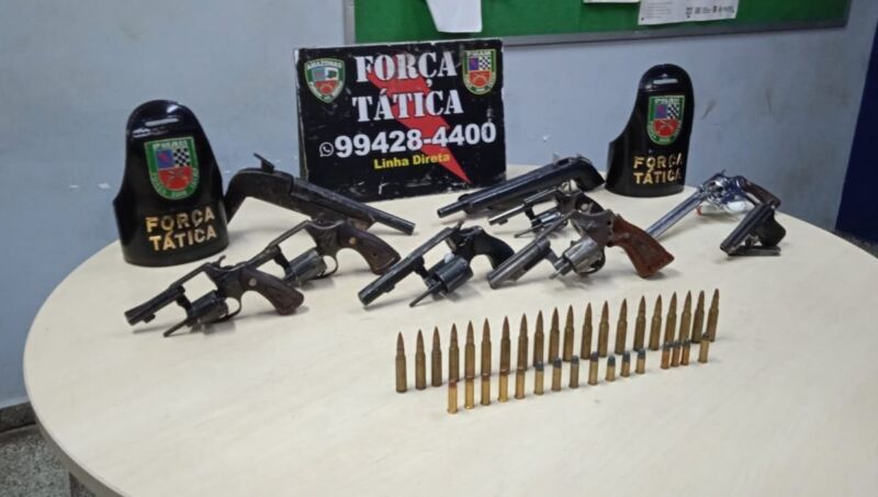 De acordo com informações repassadas pela Polícia, uma guarnição da Força Tática recebeu uma denúncia anônima, que de uma residência no Beco dos Escoteiros estava sendo utilizada como esconderijo de criminosos. Os militares se deslocaram até a residência, onde encontraram os dois homens cuidando o armamento.