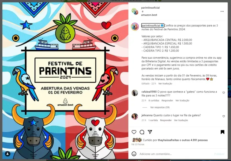 Festival de Parintins: Procon Manaus solicita informações sobre venda de ingressos