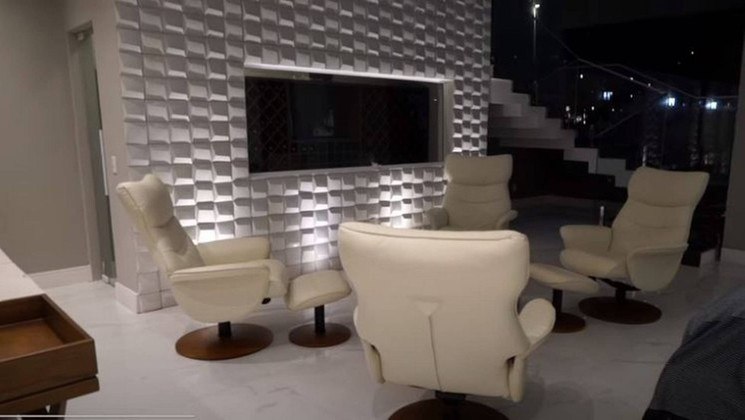 A mansão, agora de propriedade do jogador, tem 900 metros quadrados, cinco suítes, sauna a vapor, piscina aquecida, espaço gourmet, adega climatizada, cinema, escritório e três andares, sendo o último deles dedicado a um grande salão de jogos.