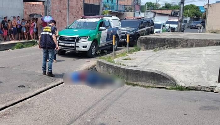 MANAUS (AM) – Um homem ainda não identificado, de aproximadamente 25 anos, foi executado com mais de dez tiros na tarde desta segunda-feira (28). O crime ocorreu na esquina da rua 34, no bairro Novo Aleixo, Zona Norte de Manaus, numa área considerada “vermelha”.