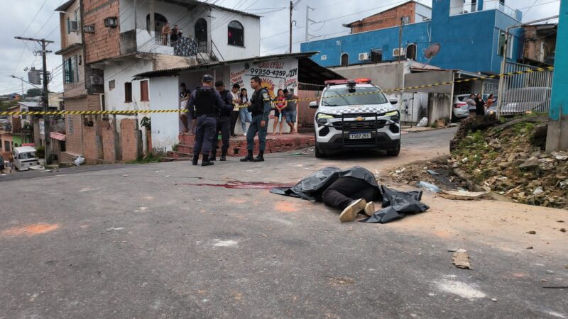 Um homem ainda não identificado foi morto com um tiro na cabeça na manhã desta sexta-feira (30), na rua Olavo Bilac, no bairro Compensa 2, Zona Oeste de Manaus. A vítima usava um capacete de motociclista no momento do crime.