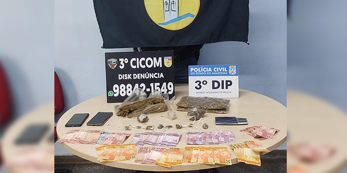 A Polícia Civil do Amazonas (PC-AM), por meio do 3° Distrito Integrado de Polícia (DIP), em ação conjunta com a 3ª Companhia Interativa Comunitária (Cicom), da Polícia Militar do Amazonas (PMAM), prendeu em flagrante, na quinta-feira (18/01), um homem identificado como Ewerton Rodolfo Cardoso Gomes, 29, em posse de maconha, oxi, balança de precisão e dinheiro em espécie no beco Tiradentes, entre os bairros Japiim e Petrópolis, localizados na zona sul de Manaus.