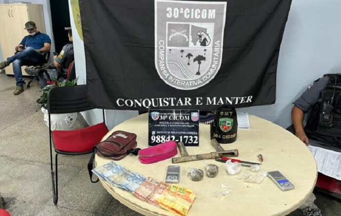 Após a troca de tiros, foi realizada a apreensão de uma considerável quantia em dinheiro, drogas e uma arma de fabricação caseira, possivelmente calibre 12. O incidente foi registrado no 14° Distrito Integrado de Polícia (DIP) para a devida condução dos procedimentos legais.