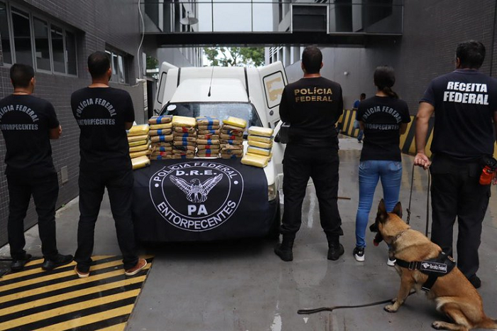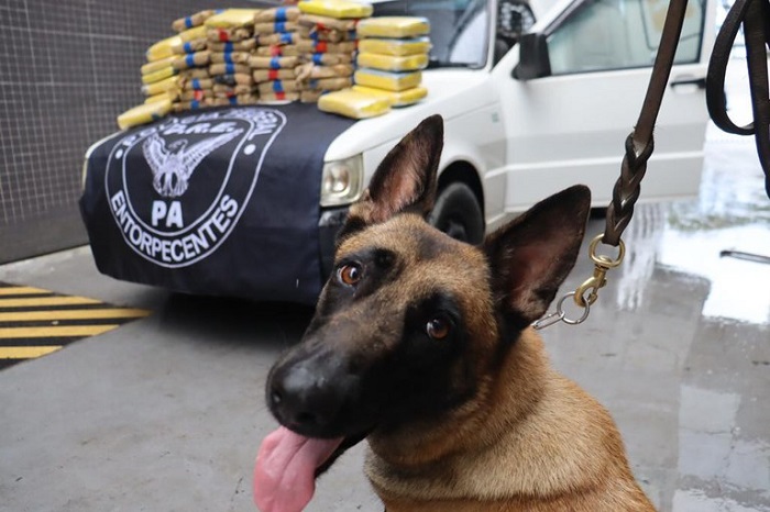 A apreensão teve participação da Receita Federal, com o cão farejador K9, que encontrou a suposta droga escondida em um veículo.
