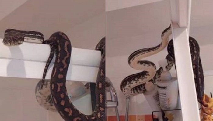 O mais engraçado em toda a situação foi o fato de o dono da casa ter uma píton de estimação, mas ainda se assustar com o intrusa de 1,80 metros em seu banheiro.