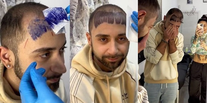Homem tatua franja na cabeça para nunca mais ter que se ver calvo