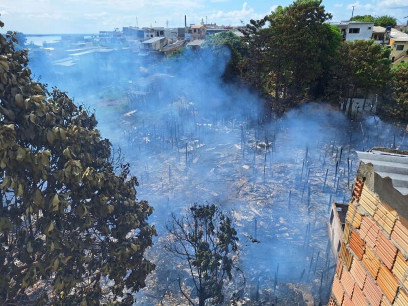 O Corpo de Bombeiros Militar do Amazonas (CBMAM) estima que mais de 30 casas de madeiras foram atingidas pelo incêndio, deste sábado (20), na comunidade Bairro do Céu, que fica entre os bairros do Centro e de Nossa Senhora Aparecida, na zona sul de Manaus.