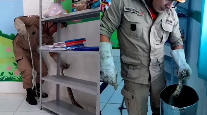 Uma cobra Jiboia foi resgatada pelo Corpo de Bombeiros de dentro de uma creche nesta sexta-feira, 24, em Manacapuru, no interior do Amazonas. A cobra estava dentro de uma sala de aula. Segundo os bombeiros, o animal oferecia risco aos funcionários e alunos que acabaram acionando a equipe.