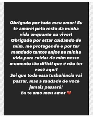“Obrigado por tudo, meu amor! Eu te amarei pelo resto da minha vida enquanto eu viver!”, escreveu.