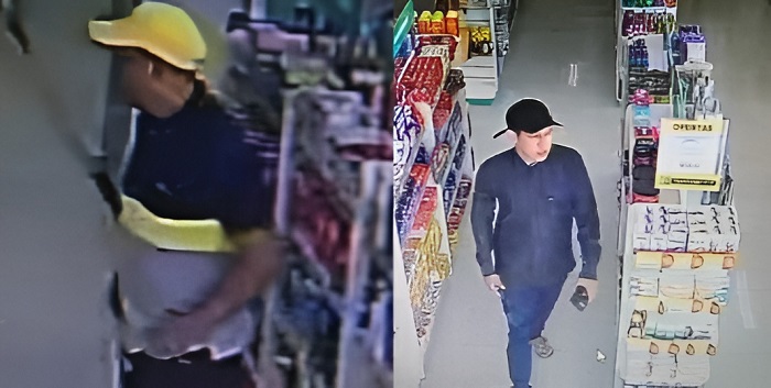 Nas imagens, dois deles aparecem com uma sacola e colocam vários remédios, de vários tipos. Eles também levaram objetos pessoas das vítimas.