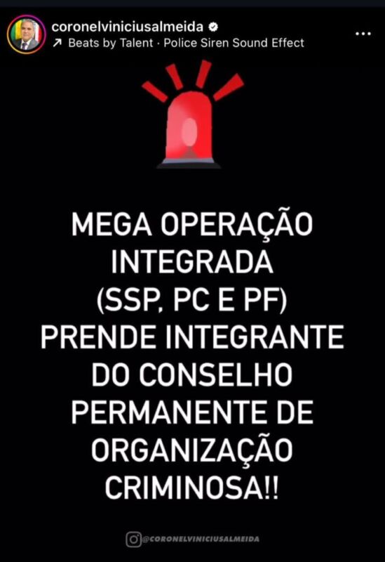 A informação da prisão do integrante de facção criminosa foi confirmada pelo titular da Secretaria de Segurança Pública (SSP), Coronel Vinicius Almeida.