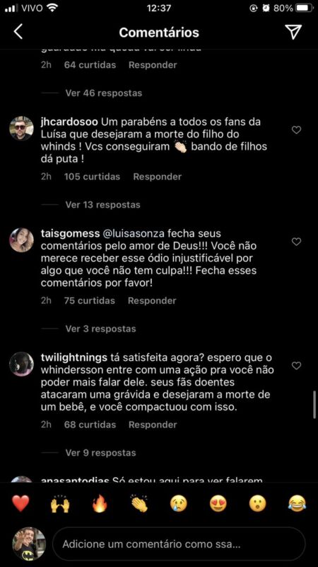Os comentários chamam Luíza Sonza de assassina e acusam a jovem de se aproveitar da repercussão da separação para lançar um música. Segundo internautas, a situação teria gerado um estresse em Maria Lina, causando o nascimento antecipado do bebê.