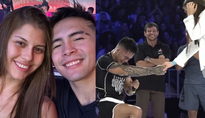 A moça foi surpreendida com o jiujiteiro se ajoelhando e fazendo o pedido, ele se mostrou muito emocionado e Ellen prontamente disse sim.