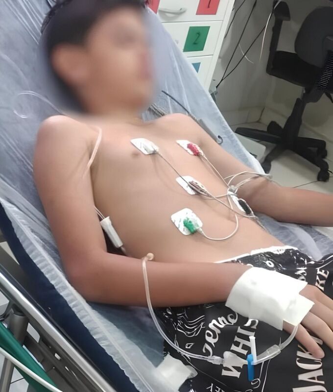 Como ele piorou, a mãe resolveu procurar atendimento no hospital local, e lá o garoto foi diagnosticado com infecção intestinal aguda e precisou ser internado em estado grave.