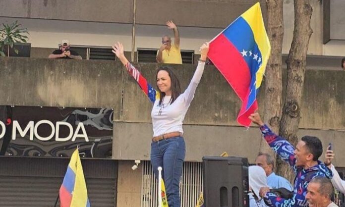 A líder da oposição venezuelana, María Corina Machado, foi presa pelas autoridades do regime chavista, segundo o seu partido, Vente Venezuela.