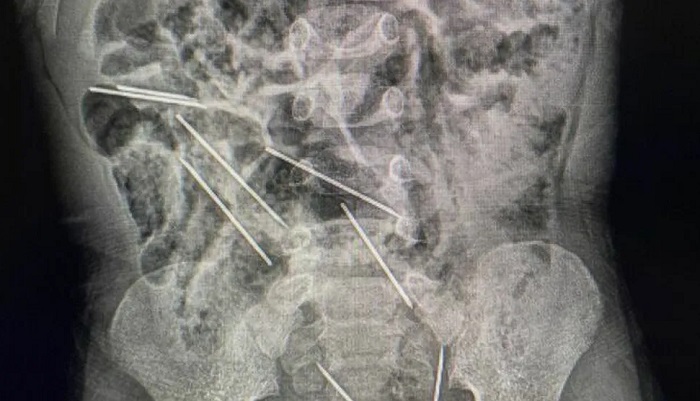 Segundo o Ministério da Saúde do país, as agulhas estavam alojadas em todo o abdômen do garoto: duas no lado direito do peritônio, três no lado esquerdo, uma na parede abdominal e outras duas entre a bexiga e o reto. A cirurgia de retirada durou aproximadamente duas horas.