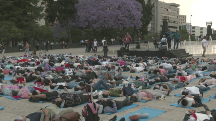 Cerca de trezentas pessoas se uniram ao movimento, no meio da rua, em uma das áreas mais barulhentas da Cidade do México. Os participantes deitaram em tapetes sintéticos usando travesseiros de pescoço. Alguns usaram máscaras nos olhos. Eles receberam uma sessão de meditação guiada, e alguns caíram em um sono profundo.