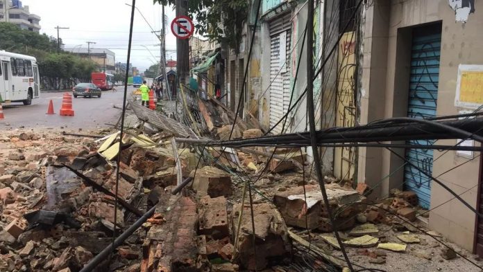 A estrutura de dois andares desabou e os escombros caíram sobre a rede elétrica, derrubando a fiação. O prédio faz parte de uma das várias casas antigas, abandonadas no Centro de Manaus, e tem toda sua estrutura deteriorada pelo tempo, por falta de manutenção.