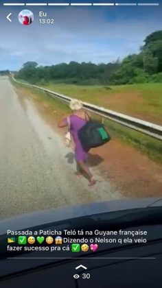 Na sequência dos comentários, outro internauta compartilha uma foto da paraense, radicada no Amazonas, caminhando sozinha pela estrada da Guiana Francesa. Nos comentários, a pessoa sugere que ela foi em busca de sucesso.