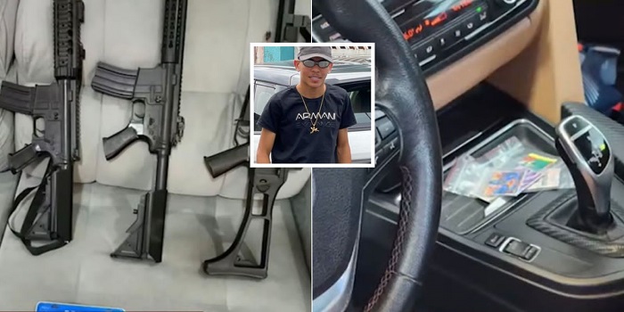 “Durante o curso das diligencias, o Lucas tentou se desfazer de dois celulares e da chave de um dos automóveis de luxo, uma BMW. Durante o procedimento de apreensão desses veículos foi encontrado no interior dessa BMW uma cerca quantidade de material entorpecente do tipo sintético, aproximadamente 170 unidades da droga denominada LSD, além de munições de fuzil, ele que ostentava nas redes sociais fotografias com fuzil, e também uma motocicleta com sinais de adulteração. Por conta disso ele foi flagranteado também por tráfico de drogas, associação ao tráfico de drogas e adulteração do sinal de identificação de veículo automotor”, completou.
