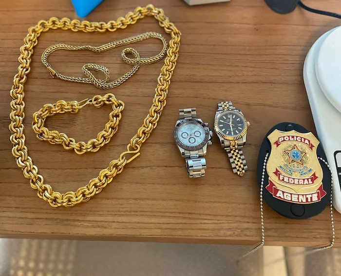 MANAUS — Cordões, relógios, barras de ouro, objetos valiosos, a Polícia Federal revelou na manhã desta quarta-feira (20), imagens de parte do que foi apreendido na Operação Emboaba em Manaus, que levou os agentes para o Supermercado Nova Era, na Torquato, a um condomínio de luxo na Ponta Negra, ao Big Amigão do Cidade de Deus e na Just Time da Amazônia, no Distrito Industrial.