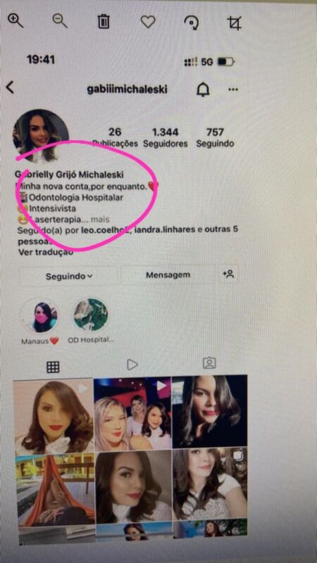 Conforme apurado no curso da investigação a detida criou uma personalidade fictícia onde ela se apresentava em redes sociais como a Dra GABRIELLY GRIJO MICHALESKY, CRO AM-CD-6155 (registro pertencente à outra profissional) e informava ser cirurgiã dentista com especialização em odontologia hospitalar, intensivista e laser terapia, cursos estes feitos no Rio de Janeiro, além de dizer que trabalhava dando plantão em hospitais renomados desta cidade.