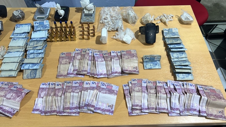 “Eles empreenderam fuga em direção a mata, e um deles deixou cair uma arma de fogo e munições. Por se tratar de uma vila de quitinetes, continuamos a averiguação na localidade. Em uma delas, se encontravam Gabrielly e Naiara, além de diversas porções de cocaína e maconha, R$ 710 em espécie, aparelhos celulares, três balanças de precisão e uma tornozeleira eletrônica”, disse o delegado.