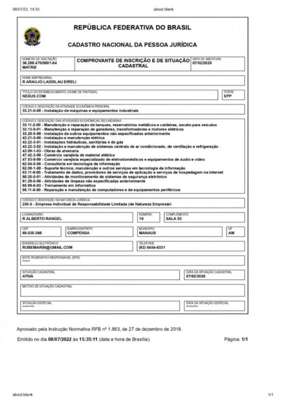 A empresa em questão que irá supostamente fornecer o serviço ao município, está localizada na rua Alberto Rangel, nº 10, bairro Compensa, localizado na zona Oeste de Manaus.