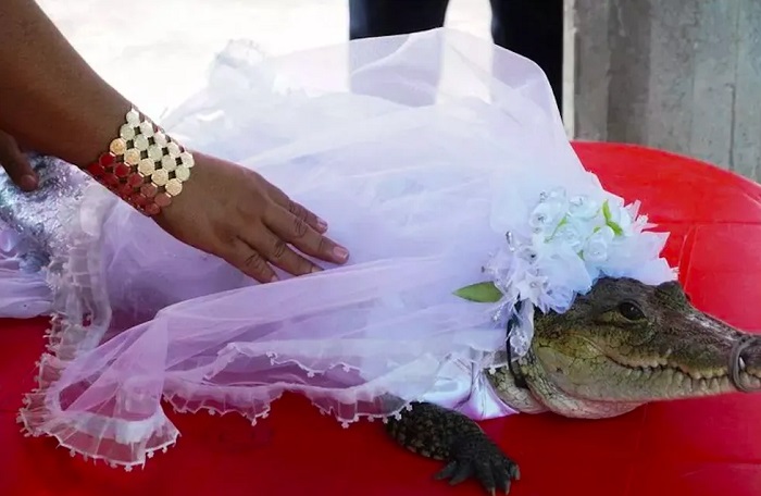 Como parte de uma cerimônia ancestral de prosperidade, o prefeito de San Pedro Huamelula, Victor Sosa, no México se “casou” no último sábado (1º) com uma noiva-crocodilo, chamada de “princesinha”.