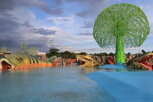 O gigantismo da obra, com projeto arquitetônico do Implurb, segue com a maior praça molhada da cidade, com 3,6 mil metros quadrados, que tem ao centro a “Árvore da Vida”, com 15 metros de altura por 15 metros de diâmetros, que funcionará com esguichos de água num labirinto de folhas de aço, para ser explorado tridimensionalmente.
