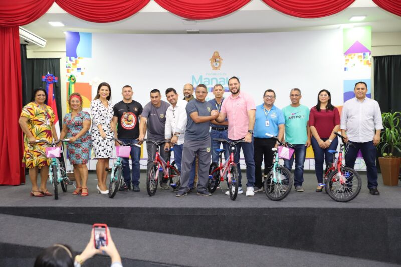 A Prefeitura de Manaus entregou seis bicicletas que serão dadas a alunos que participam das atividades do 1º semestre de 2022 do Programa Educacional de Resistência às Drogas e à Violência (Proerd), na tarde desta quinta-feira (21). As unidades foram entregues a representantes da Polícia Militar do Amazonas, em cerimônia realizada no auditório da rede municipal de ensino.