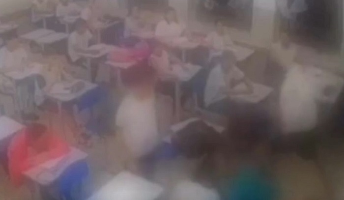 Sem que o aluno o respeitasse, o professor chamou a coordenadora da escola, e foi aí que o aluno foi para cima dele. Socos e chutes foram filmados pela câmera da sala de aula.