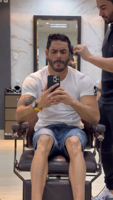 São Paulo – O sertanejo Rodolffo, da dupla com Israel, gravou um vídeo despretensioso nesta quarta-feira (31), nos stories do Instagram, enquanto cortava o cabelo no salão de beleza. Nas imagens, porém, as pernas finas do artista chamaram a atenção e o vídeo viralizou.